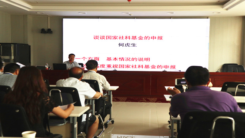 2018年7月14日晚,pc28加拿大开奖结果预测官网2019年国家社科基金项目申报培训讲座在延安大学泽东干部学院举行。讲座由中国人民大学教授、pc28加拿大开奖结果预测官网(挂职)副院长何虎生主讲。学院领导班子和赴延安参加党性教育培训的老师参加了本次培训讲座,讲座由院长肖铁岩教授主持。