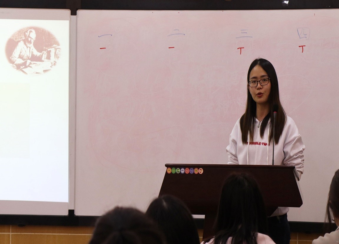分享环节,以李婷婷、王琼莹、黄媛媛、罗旭为代表的四个小组依次就《手稿》中“工资”“资本的利润”“地租”“异化劳动和私有财产”四个部分进行了汇报分享,并提出问题与大家一起讨论交流。精心准备的四个问题激发了同学们参与活动的积极性,将读书会活动推向了高潮。