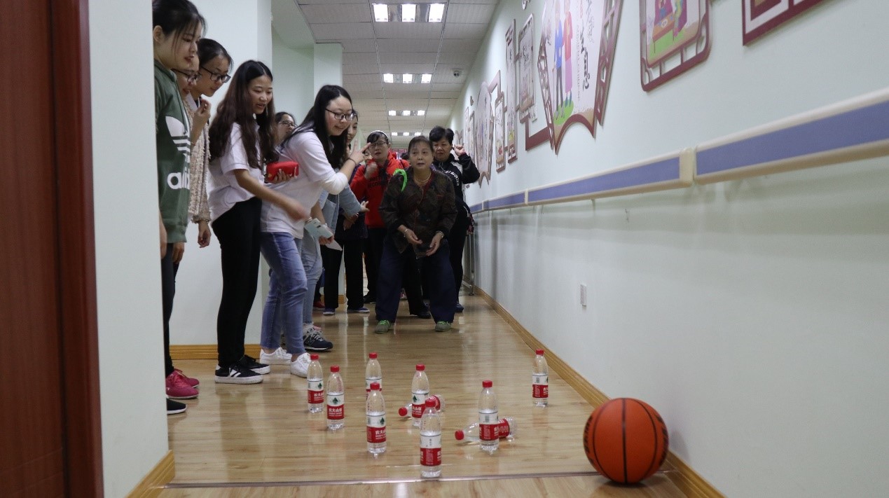 在社区的活动室里,时而吵闹,时而安静,这是因为爷爷奶奶在玩“击鼓传花”游戏和进行保龄球比赛。游戏失败的老人们毫不怯场地为大家演唱了《没有共产党就没有新中国》、《社会主义好》、《团结就是力量》等数十首经典红歌,引发全场大合唱,将活动推向了高潮。看到老人们乐在其中,同学们不禁感慨,“击鼓传花”传的是一种同舟共济、众志成城的精神,一种相互勉励、彼此竞争的志气,一种敢为人先、虽败犹荣的洒脱,一种追求时尚、传递欢乐的奉献。在相亲相爱的友情中,鼓声是共鸣在心坎上的叮咛,传花是流转在友谊间的芬芳,最终无论花落谁家,都将是一场美丽而温馨的邂逅。