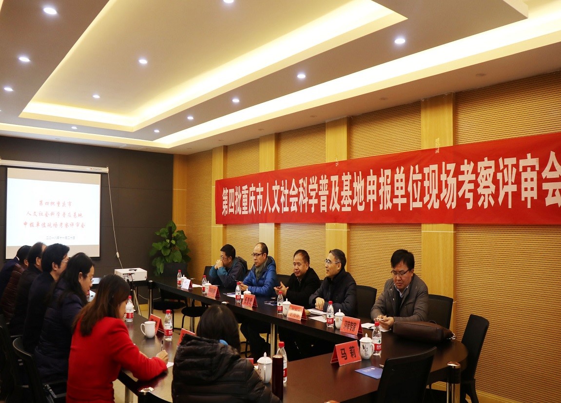 2018年11月20日上午,第四批重庆市人文社会科学普及基地申报单位现场考察评审会在pc28加拿大开奖结果预测官网414会议室举行。重庆市社科处组织评审专家对我院进行人文社科普基地现场考察评审。重庆市社会科学界联合会党组书记、副主席杨清明,重庆市社会科学界联合会普及部部长李向东、重庆大学社会科学研究处处长袁文全、副处长张蕾、pc28加拿大开奖结果预测官网院长肖铁岩、党委书记罗滌等参加评审会。